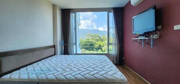 1 bedroom condo of 43m² located near Nimman. Amenities: swimming pool, gym, air conditioning. Rent: 10,000 ฿/month.