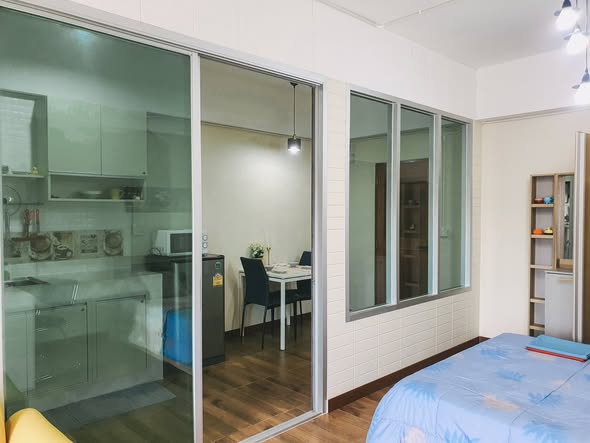 Ce bien situé au Impress Town Condominium – Nimman / Suandok area offre un cadre de vie confortable à Chiang Mai. D'une superficie de 36m², il est entièrement meublé au 4ème étage avec balcon privé donnant sur Doi Suthep. Le bien est situé dans le quartier de Nimman, quartier calme et agréable. Cuisine séparée avec cloison vitrée, grand lit queen size, bureau pour télétravail. Le loyer est de 9 000 ฿/mois.