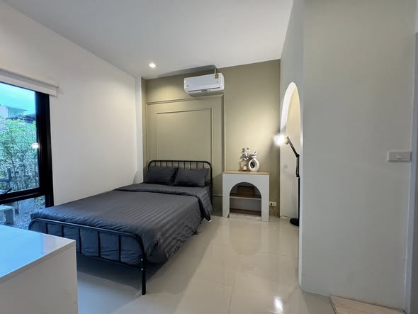 Ce studio offre un cadre de vie confortable à Chiang Mai pour des séjours courts. Il est prêt à être aménagé et dispose de tout le nécessaire : wifi, climatisation, machine à laver, réfrigérateur, micro-ondes. Le bien est situé dans le quartier de Tha Pae, à 450m de Manaska Mauy, proche du Night Bazaar, du marché Warorot et de Tha Pae Gate. Location à la semaine : 4 000 ฿ (6-21 février) ou 7 500 ฿ pour deux semaines.